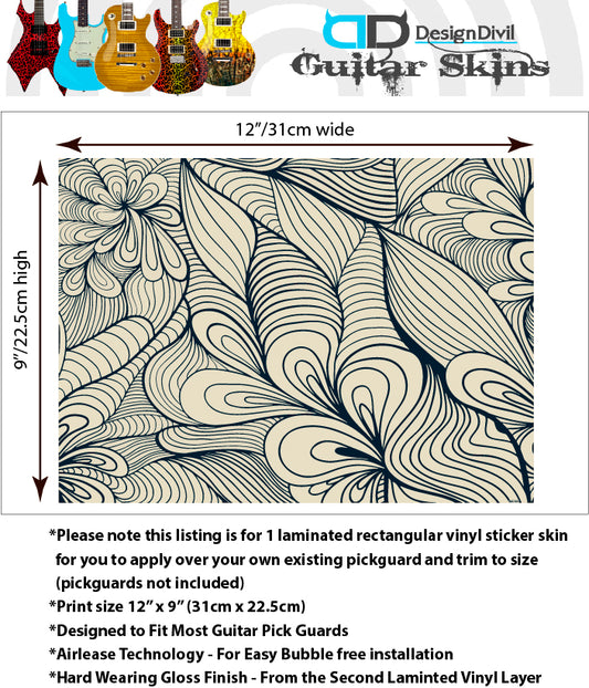 Guitar Custom PickGuard Sticker Skins. Customise your own existing Pickguard, Headstock, Tremolo Cover plate. The Swirls PK09