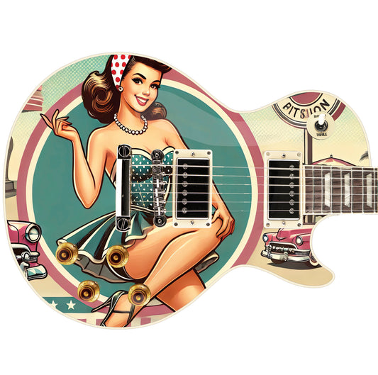 The Vintage Pin-up Girl Guitar Cover Skin Wrap - Laminated Printed Vinyl Sticker Decal - Fits most Guitars and Basses.