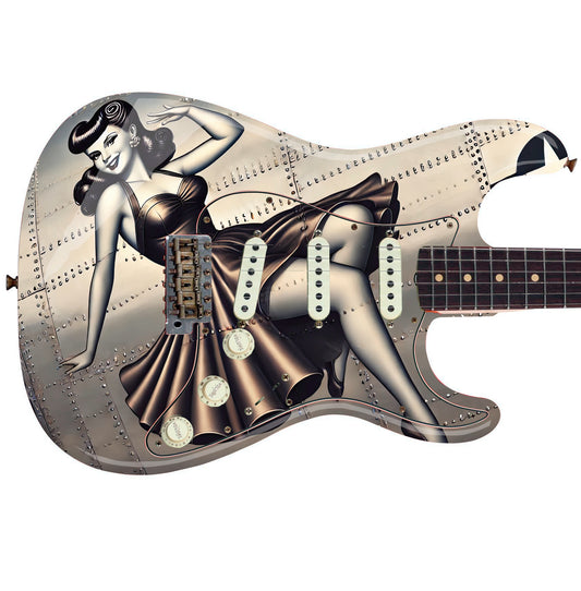 The Vintage War Pin-up Girl Guitar Cover Skin Wrap - Laminated Printed Vinyl Sticker Decal - Fits most Guitars and Basses.