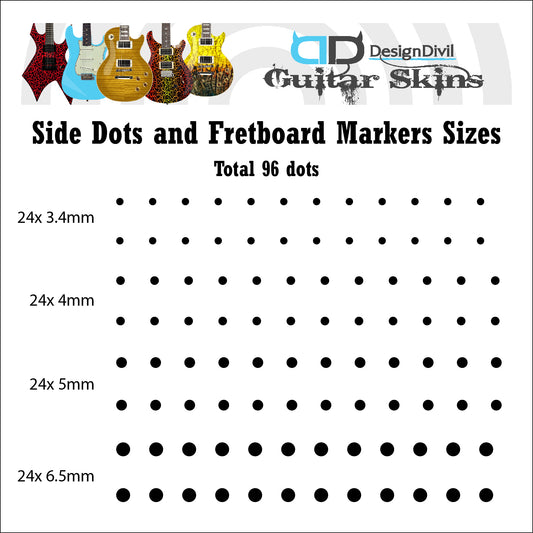 Side Dots and Fret Markers Decal Stickers for Guitars & Basses 8 Colour Options