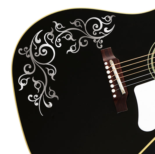 Pro Acoustic Floral Swirl. Guitar Vinyl Matte Decal Sticker.