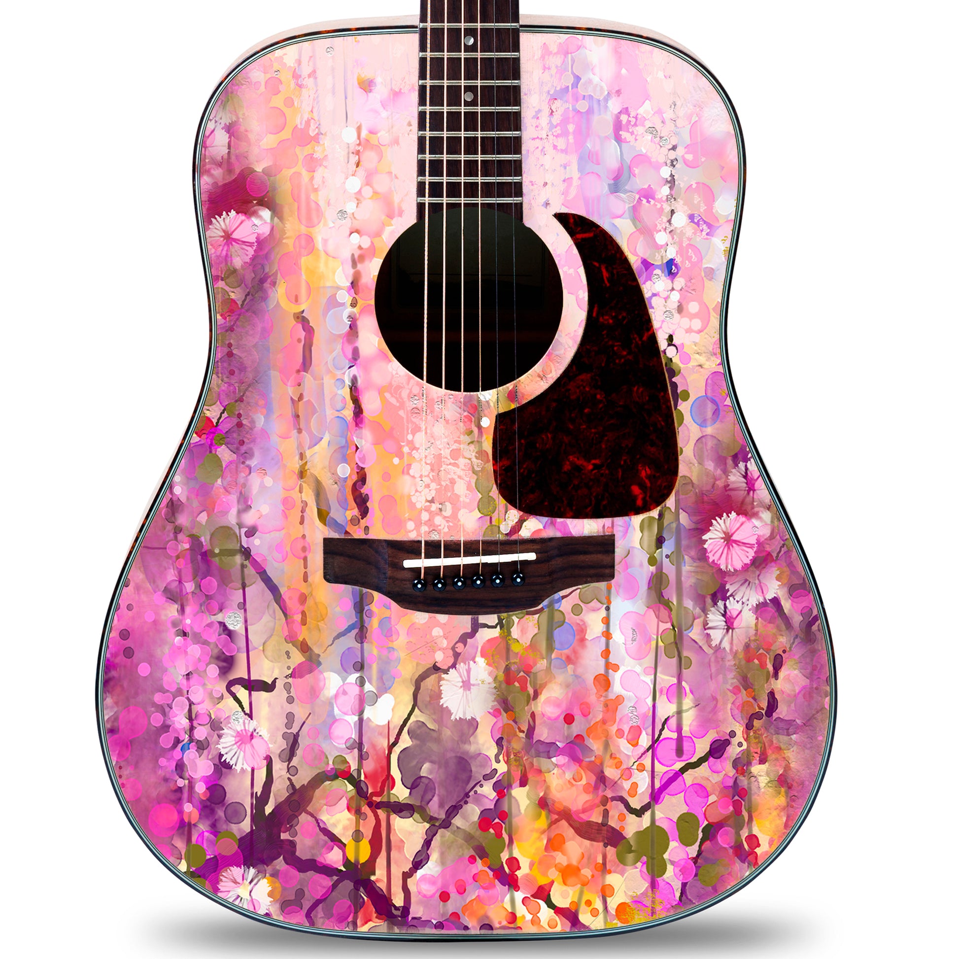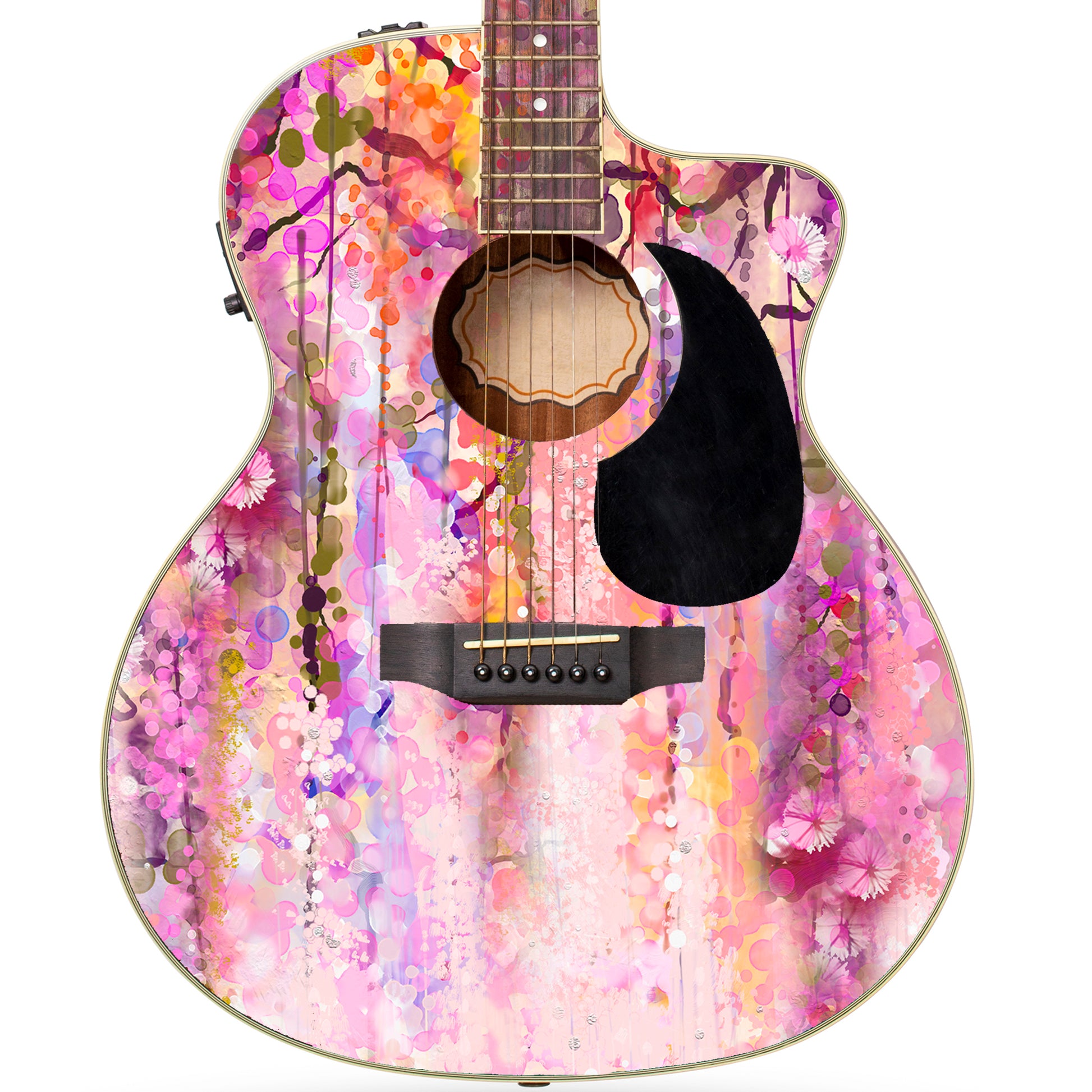 Acoustic Guitar Skin Wraps Vinyl Decal Sticker 'Watercolour Pink Spring' GS155