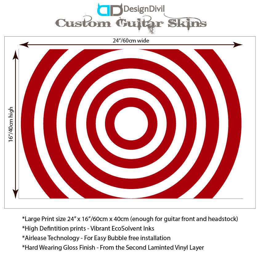 Bullseye Guitar Laminated Skin Wrap Vinyl Decal Stickers Guitar/Bass. White & Red GS37
