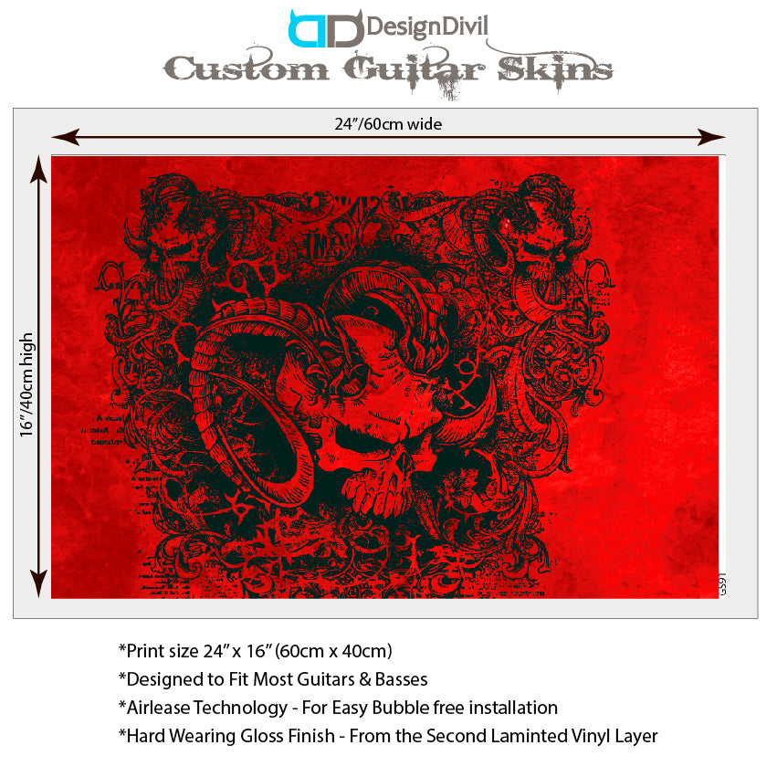 Guitar, Bass or Acoustic Skin Wrap Laminated Vinyl Decal Sticker Death Metal GS91