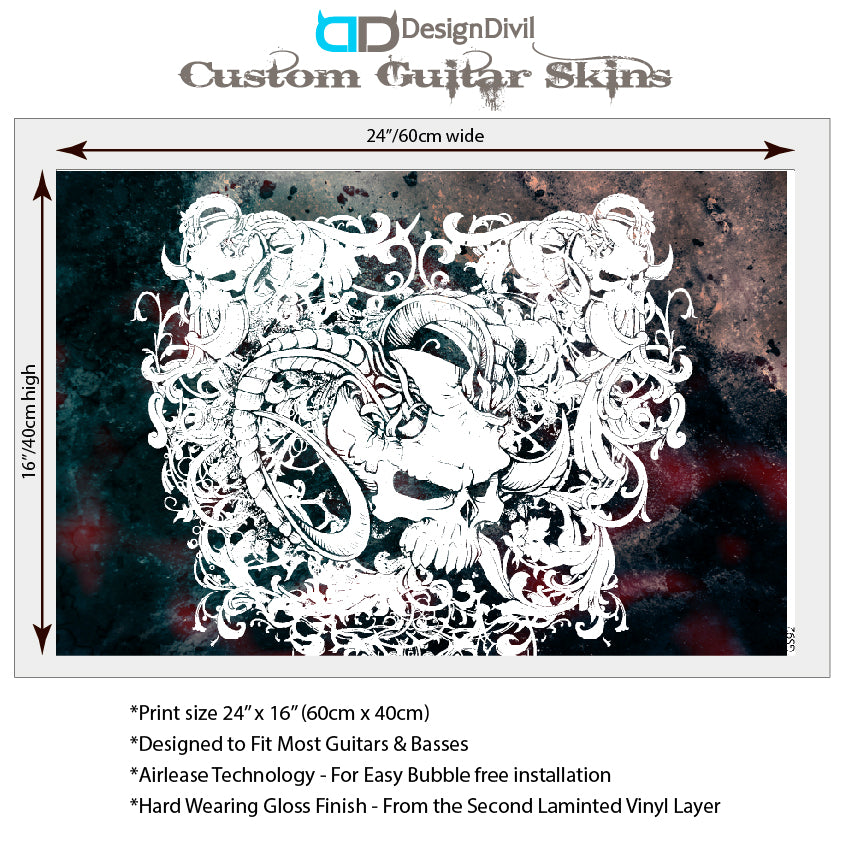 • Your Custom Design Divil Guitar Skin will come in a large size 24’’ x 16’’(60cm x 40cm) The size is large enough for you to get the front body and headstock covered on most Electric/Acoustic Guitars & Basses.