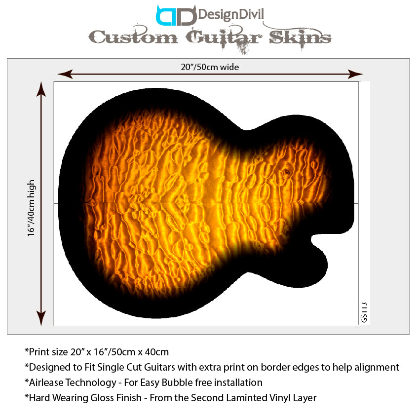 - Your Custom Design Divil Guitar Skin will come in a large size 24’’ x 16’’(60cm x 40cm) The size is large enough for you to get the front body and headstock covered on most Electric/Acoustic Guitars & Basses.