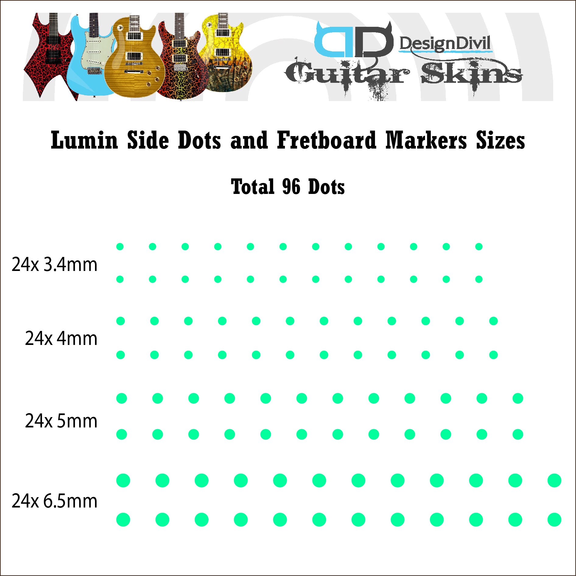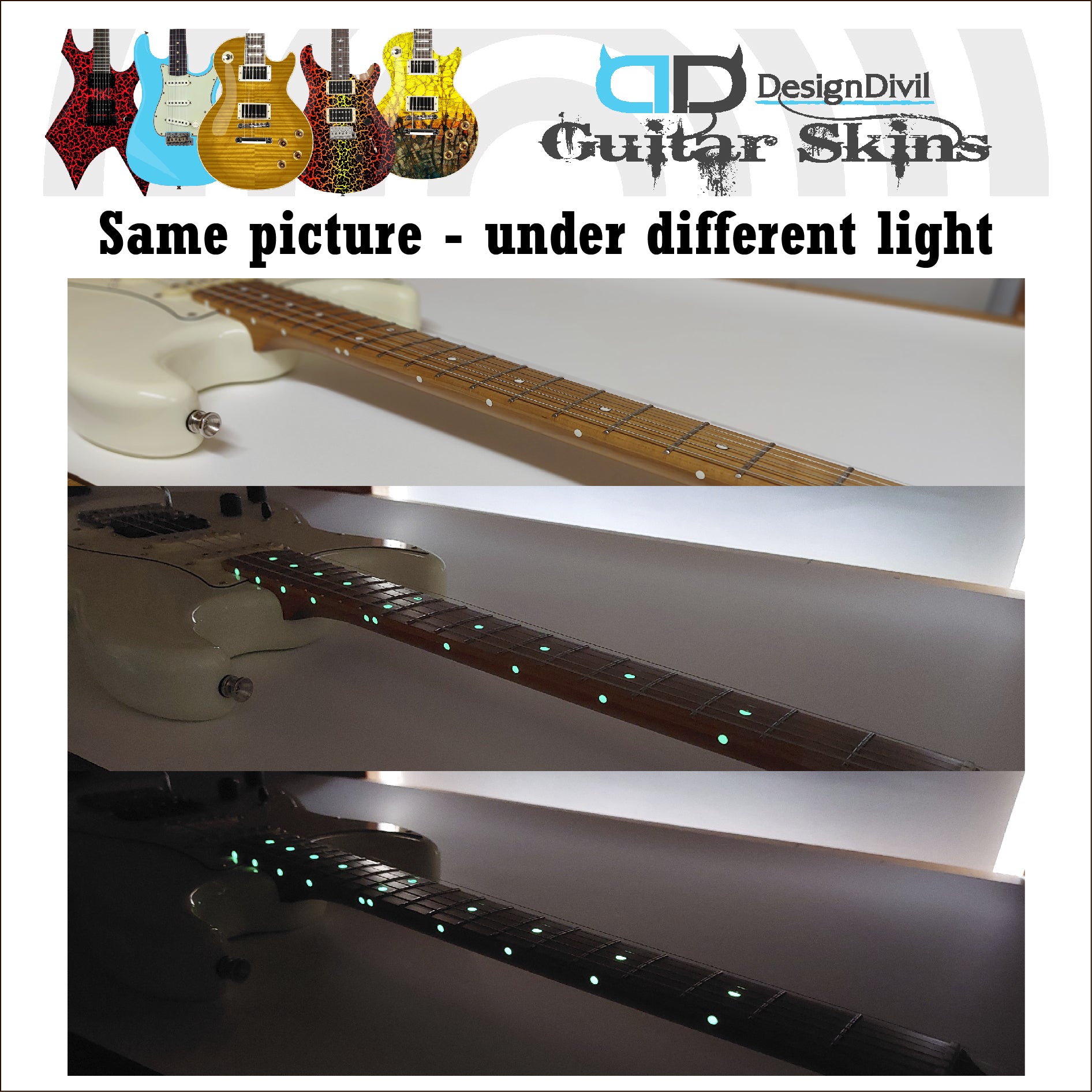 Beautifully designed and precision cut Luminous Vinyl ''Side Dots and Fret Markers'' Vinyl Decals.