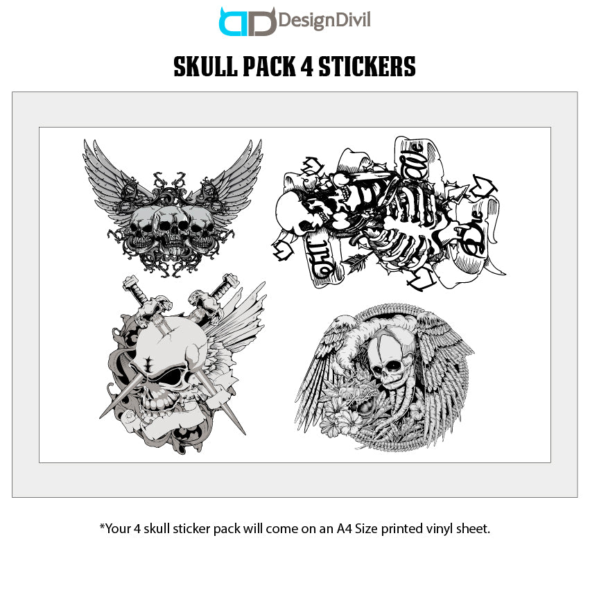 - Your 4 x Skulls will come on an A4 size printed vinyl Sheet