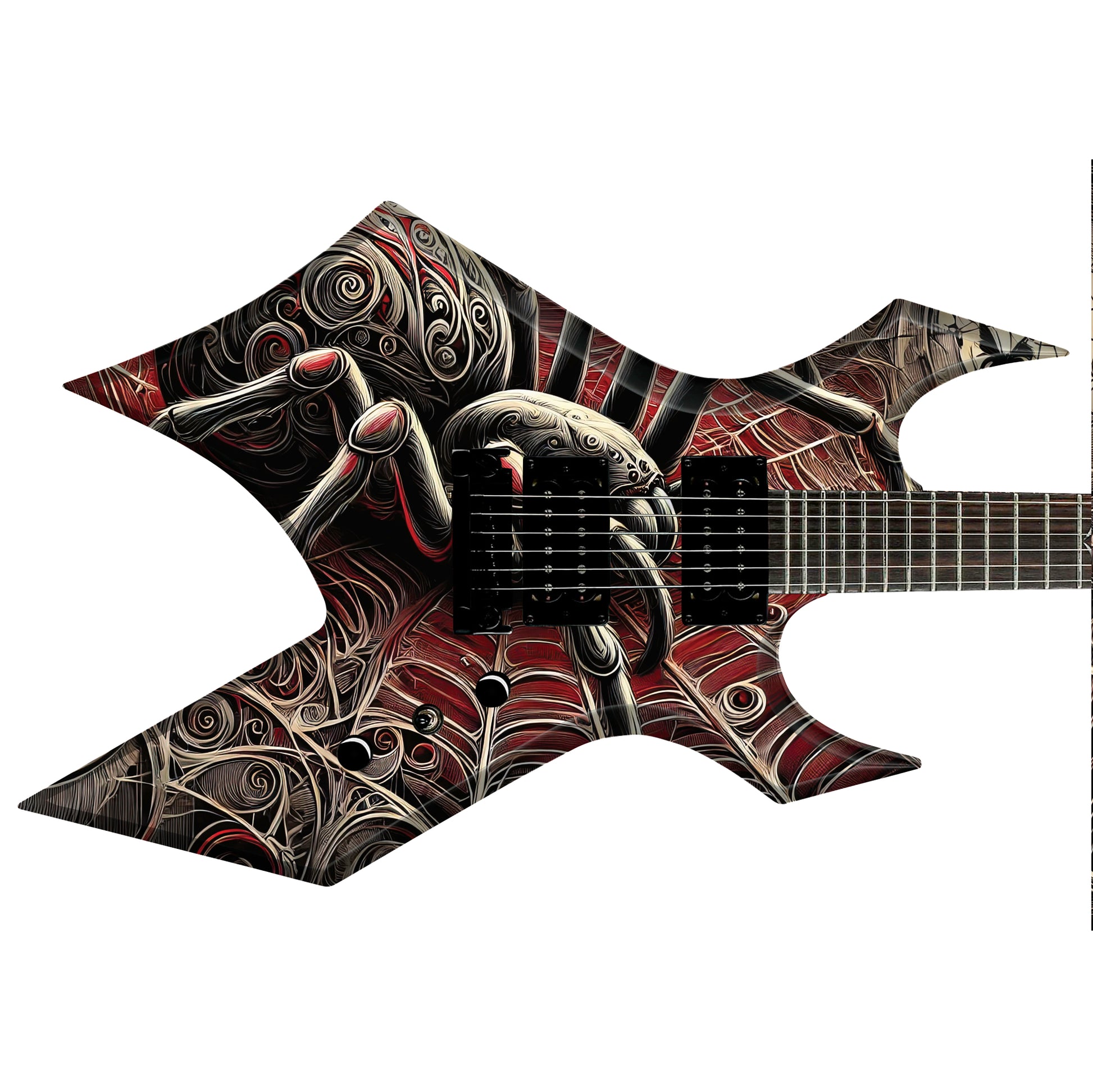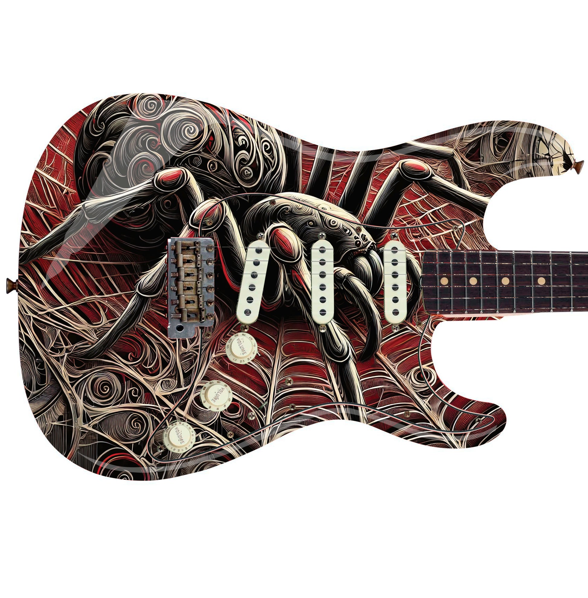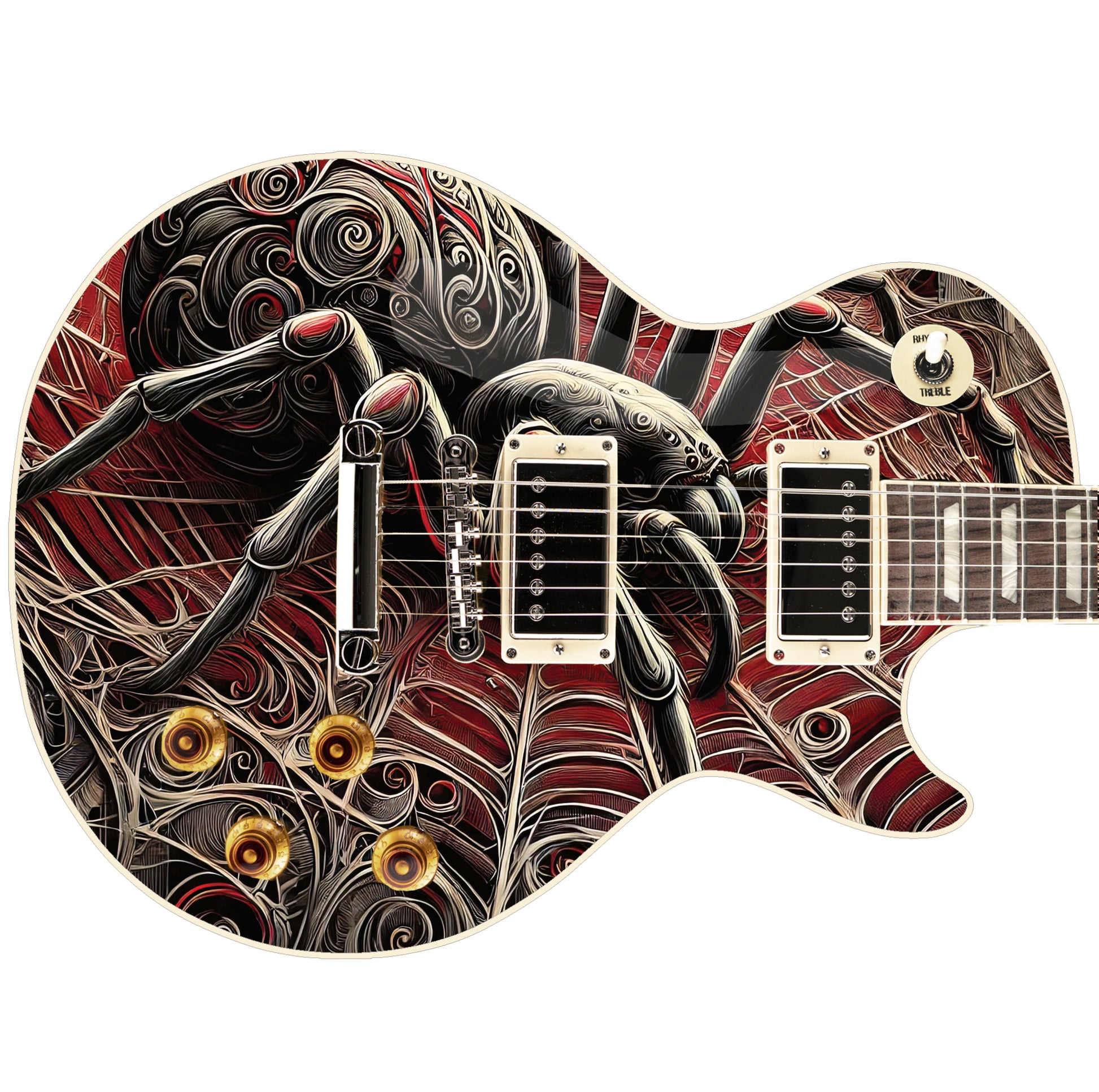 The Red Widow Guitar Cover Skin Wrap - Laminated Printed Vinyl Sticker Decal - Fits most Guitars and Basses.