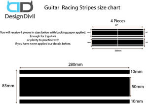 Beautifully designed and precision cut Wide Racing Stripes Vinyl Decals to fit all Guitar/Bass Bodies.